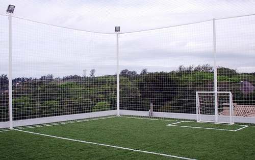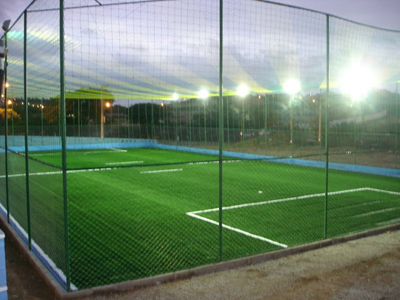 Instalamos redes de proteção em campos de futebol ou quadras esportivas.