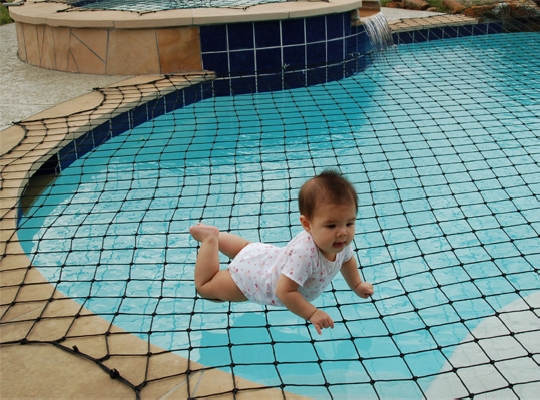 Instalamos redes de proteção em piscinas para evitar o risco de afogamentos de bebes e de crianças que não sabem nadar.